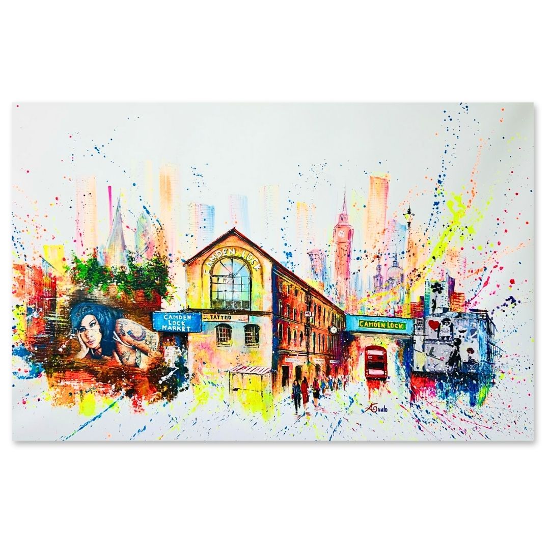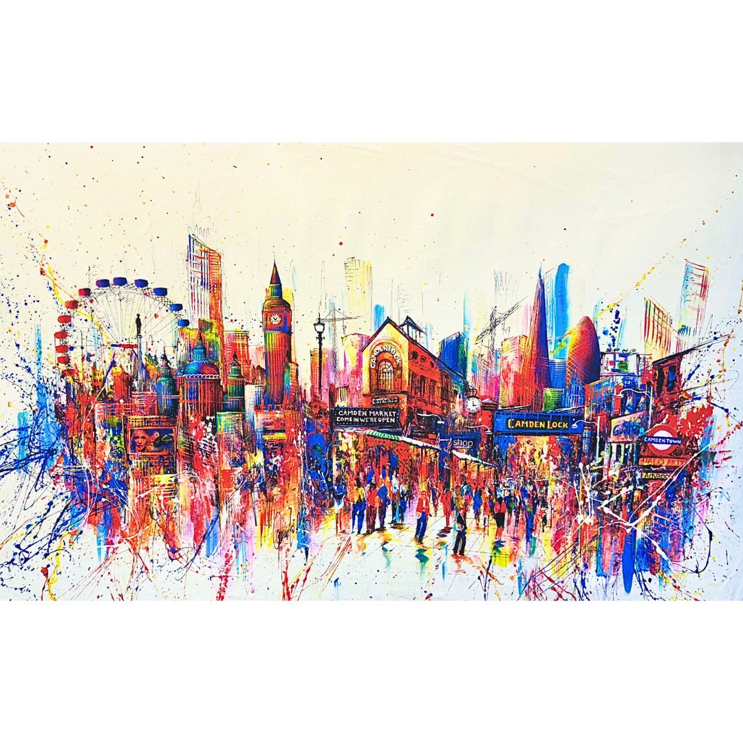 These Limited Edition Camden Art Prints capture everything we love about Camden Town: the London Eye, Big Ben, Camden Lock, street culture, Amy Winehouse’s legacy, and that iconic market buzz… all reimagined in vibrant, expressive, modern pop art.