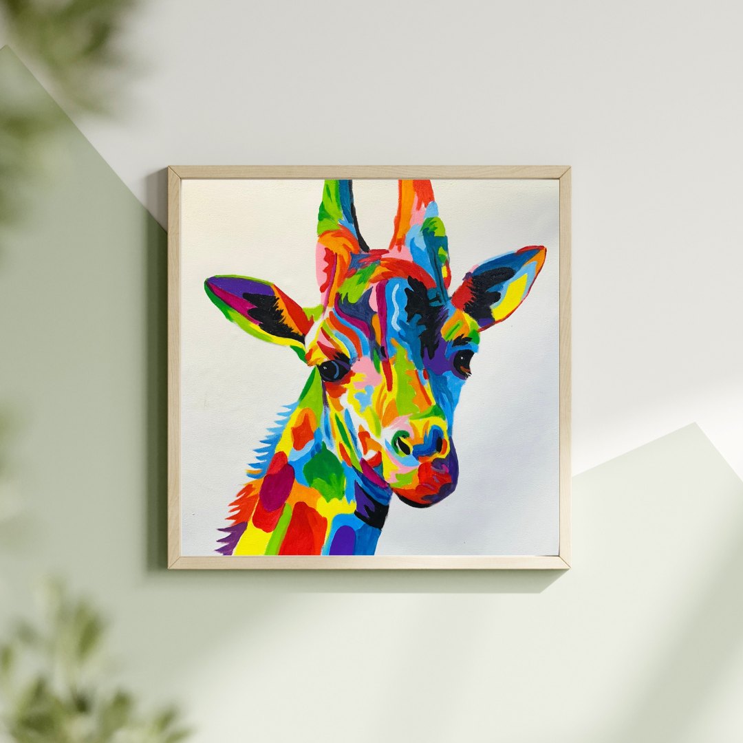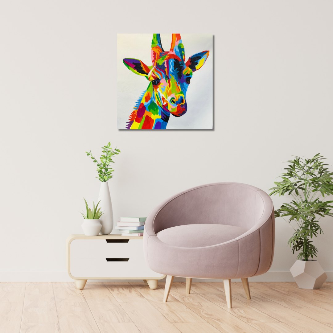 Animal Portrait Paintings, Animal Wall Art, Animal Paintings, Animal Canvas Art, these are very popular subjects that people like to hang on their walls. Colorful Giraffe Painting is also one of the most popular animal paintings from our animal portrait collection.