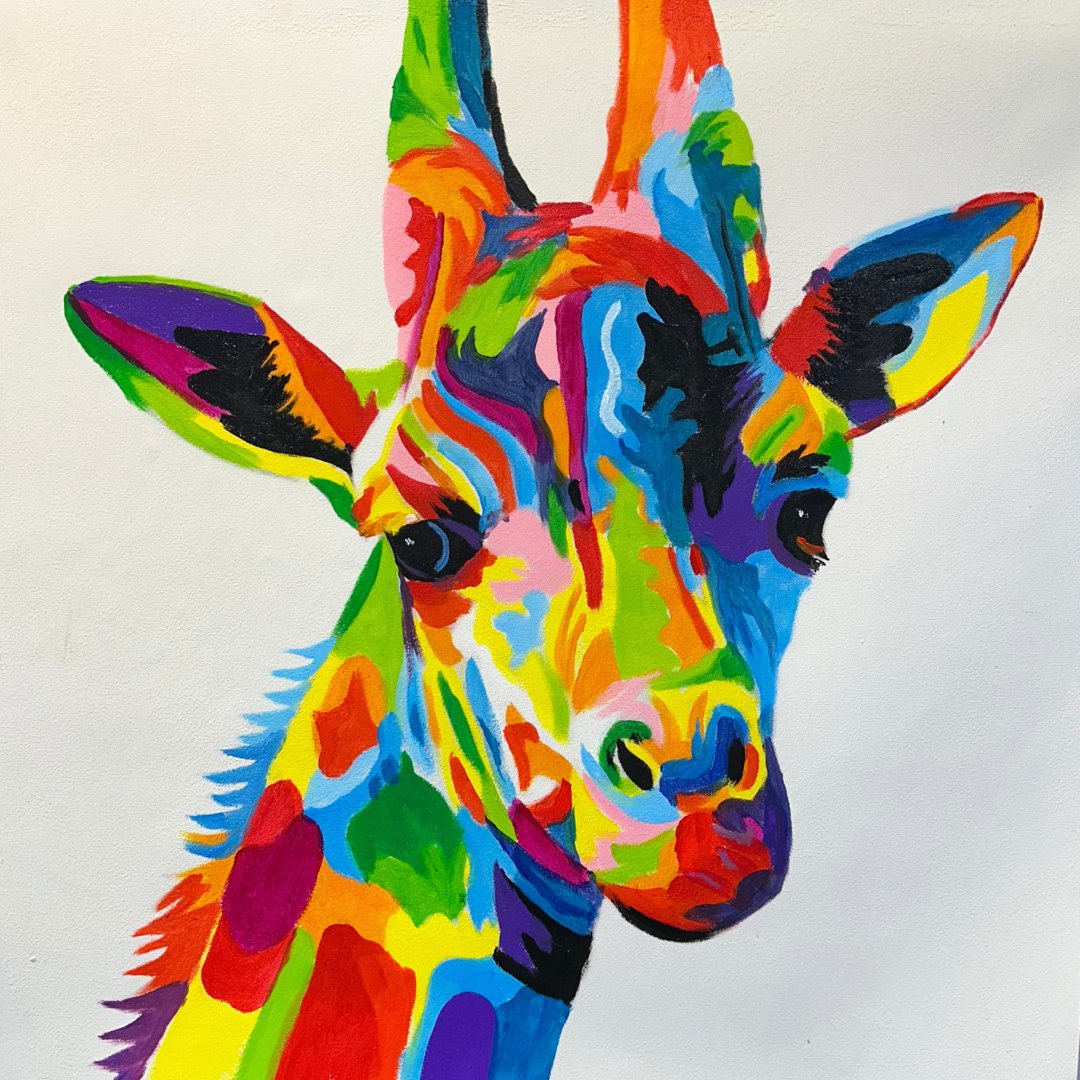 Hand-painted Colorful Giraffe Portrait Painting, Oil Painting on Canvas by Emerging Artist.