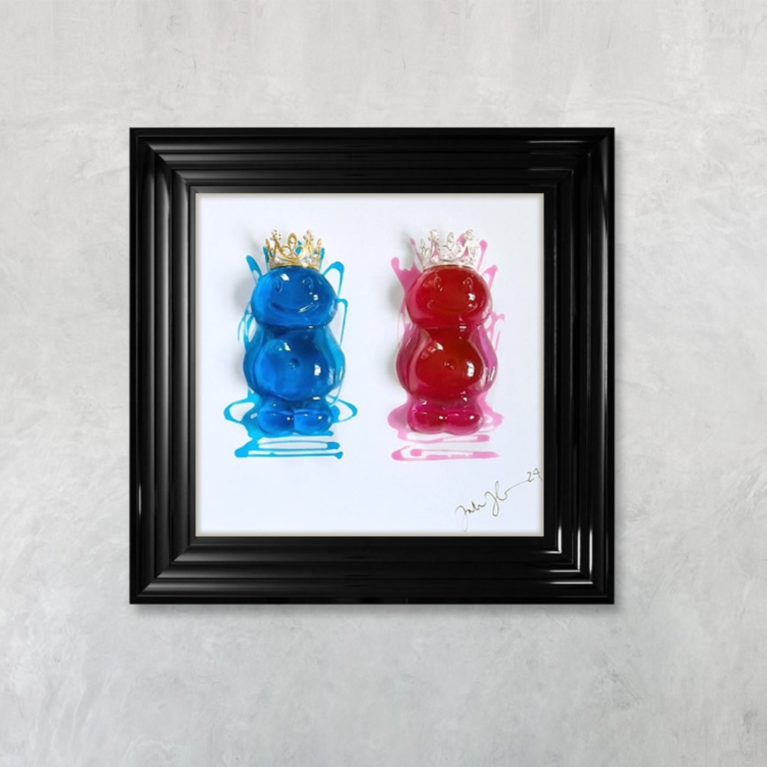 3D Liquid Art King & Queen JELLY BABIES. Framed Wall Art.