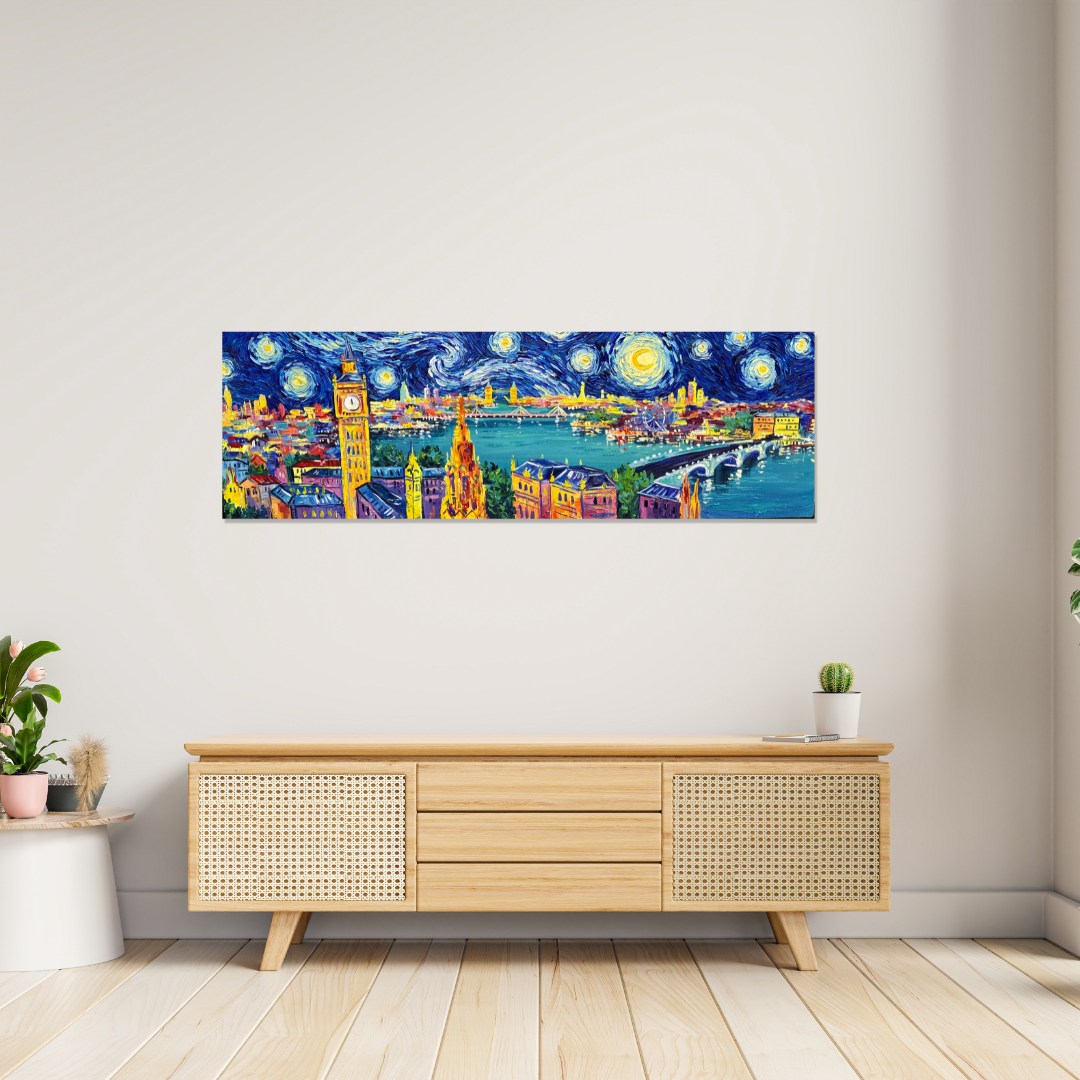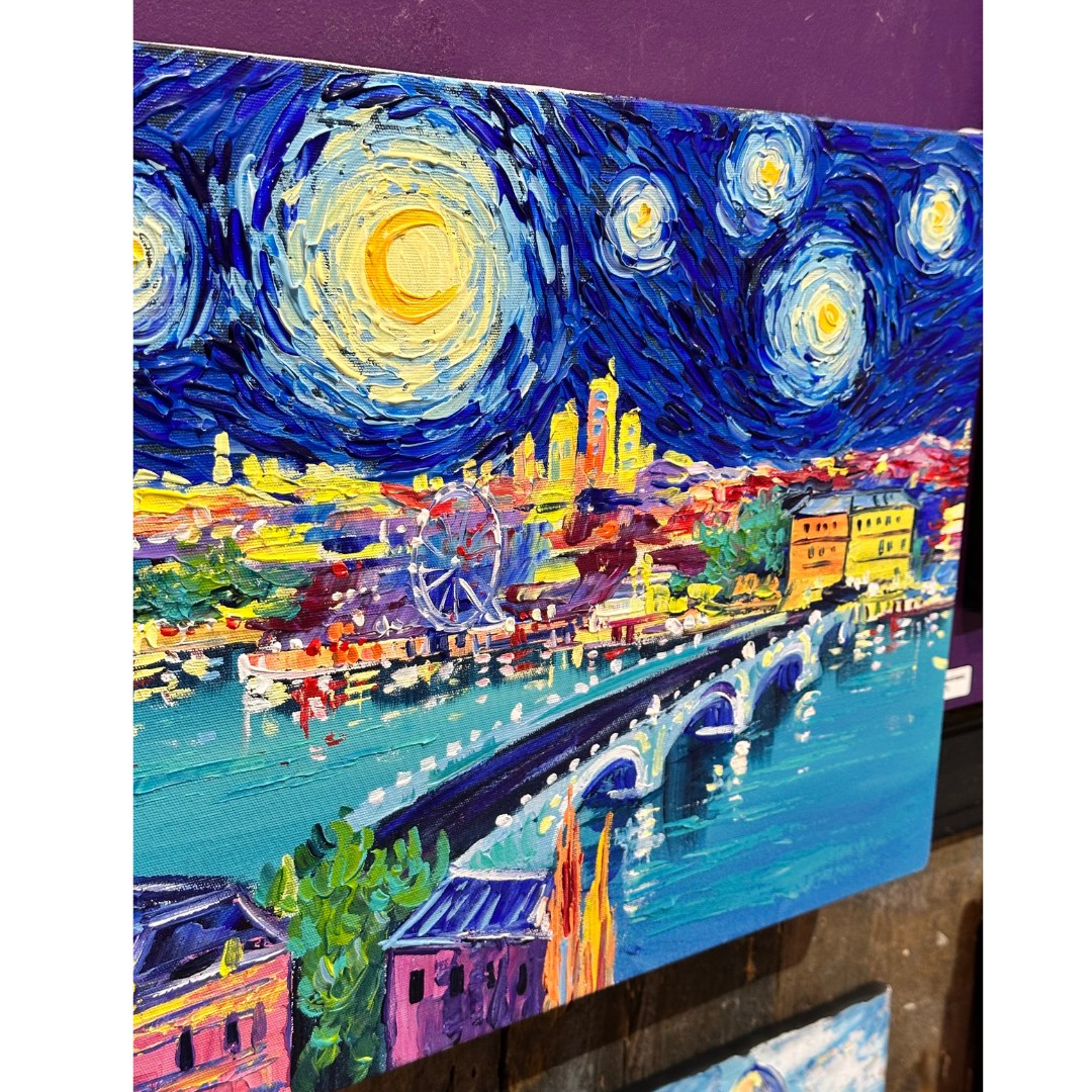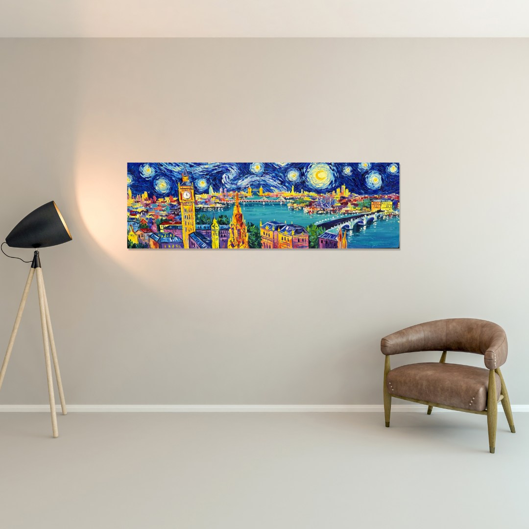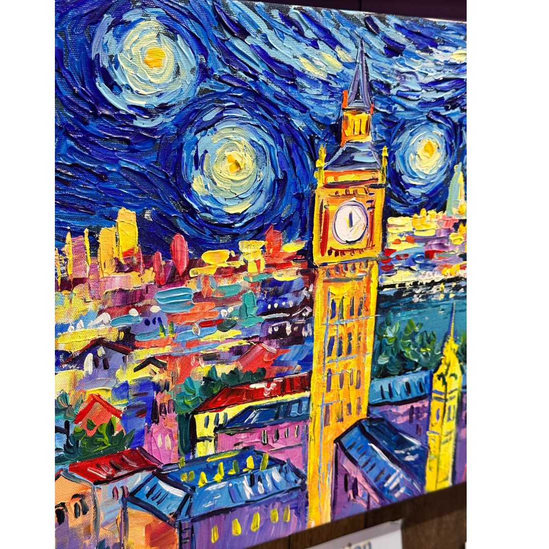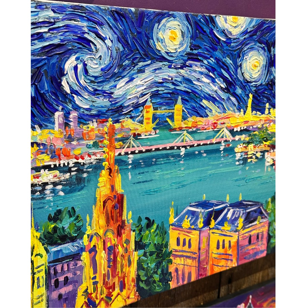 Vincent van Gogh Style, Hand-painted London Painting. Acrylic Painting on Canvas by Local Artist.